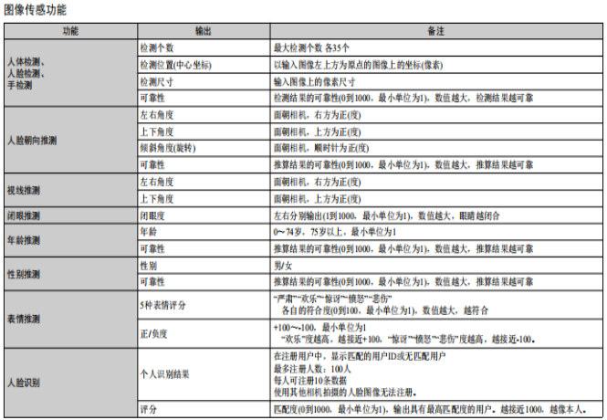 這款人體識別圖像傳感器視覺組件(HVC)是歐姆龍“OKAOTM Vision”圖像傳感技術(shù)的組合產(chǎn)品,可通過攝像頭模塊識別人體眨眼、視線方向、表情、性別或年齡。 其較大速率下的響應(yīng)時間是第一代HVC-P的10倍。 此外,還有兩種鏡頭可供選擇,長距離50度型(B5T-007001-010)和廣角90度型(B5T-007001-020)。客戶可根據(jù)檢測距離和FOV(視場)做出選擇。“HVC-P2”能夠檢測和推定對象的屬性和狀態(tài),而不會使其察覺攝像頭的存在,同時還能根據(jù)用戶需求提供對應(yīng)服務(wù)。