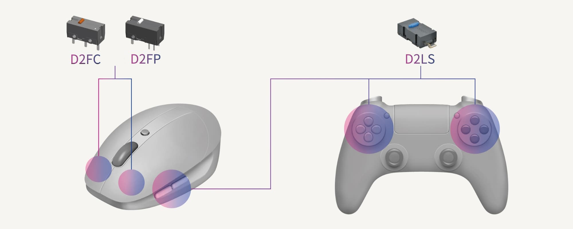 微動(dòng)開關(guān)是具有微小接點(diǎn)間隔和速動(dòng)機(jī)構(gòu),用規(guī)定的行程和力度進(jìn)行開關(guān)動(dòng)作的一種微小型開關(guān)。在最開始,歐姆龍并沒有生產(chǎn)鼠標(biāo)專用微動(dòng)開關(guān)的想法,而契機(jī)來源于一家鼠標(biāo)廠商,他們非常喜歡歐姆龍微動(dòng)開關(guān)D2F系列的操作感和輕觸感,作為日常使用頻率極高的的鼠標(biāo),具有“后行程”功能的D2F型可從推入位置繼續(xù)推入,對(duì)手指產(chǎn)生的負(fù)擔(dān)微小。于是便于手指操作且尺寸較小的D2F系列開關(guān)正巧成為了一款可滿足鼠標(biāo)開關(guān)需求的商品。