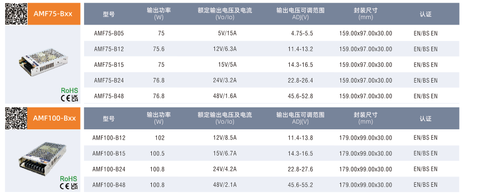 AMF75/100/150/200-Bxx, ·輸入電壓范圍:85-305VAC/120-430VDC ·交直流兩用(同一端子輸入電壓) ·工作溫度范圍:-30°Cto +70℃ ·主動式 PFC ·4000VAC高隔離電壓 ·高效率,高可靠性 ·輸出短路、過流、過壓、過溫保護(hù)(過流恒流限制) ·EMI滿足 CISPR32/EN55032 CLASS B