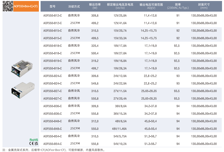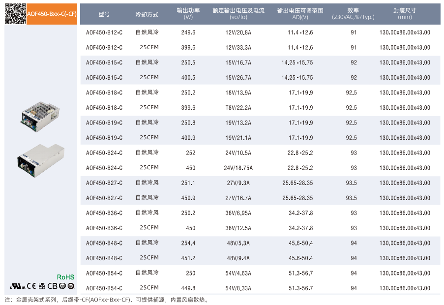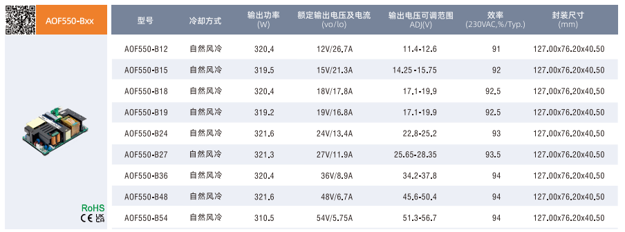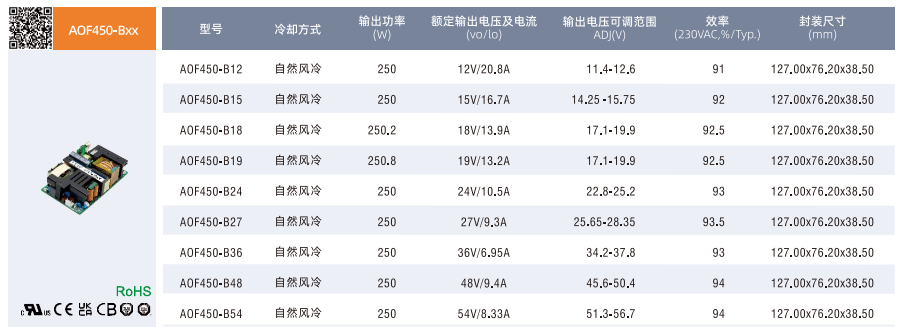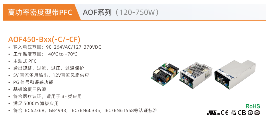 開關(guān)電源高功率密度型AOF系列250-750W