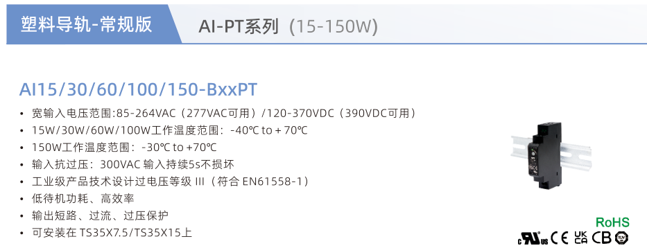 塑料導軌工業電源AI-PT系列(15-150W)