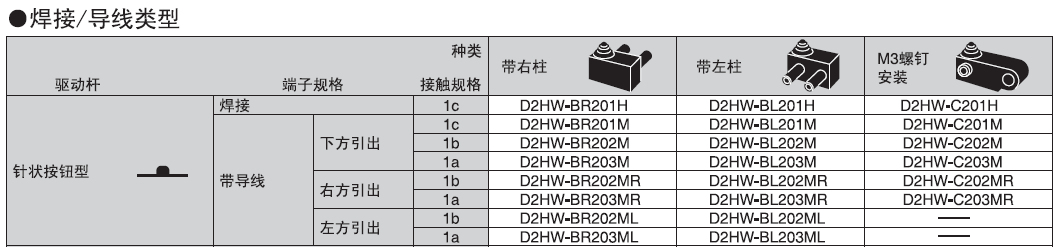 D2HW-C203ML小尺寸、可進行可靠開關的長行程開關