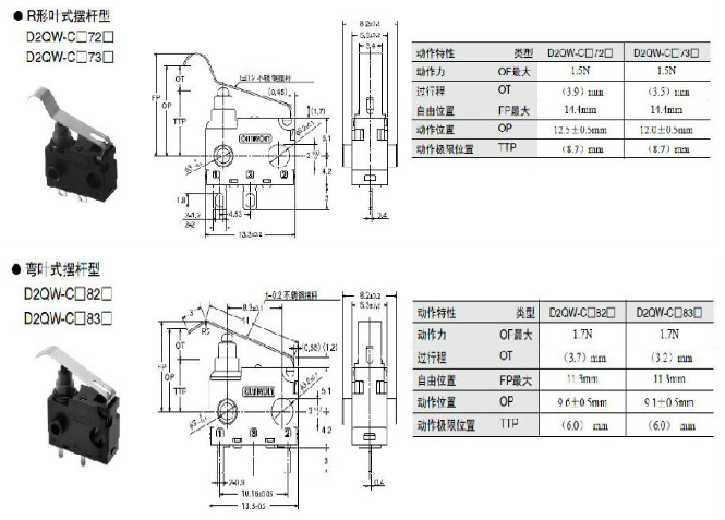 D2QW系列 密封型極小型基本開關 高可靠性和耐環境性兼備的長行程密封型開關