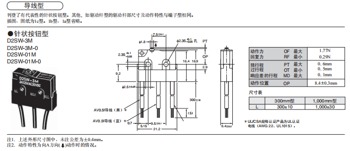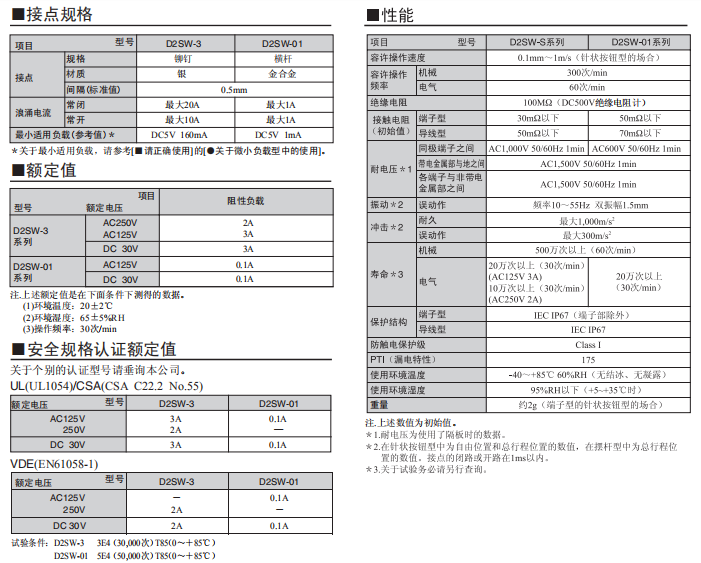 D2SW 密封型超小型基本歐姆龍開(kāi)關(guān)