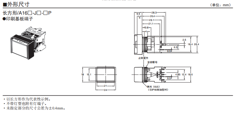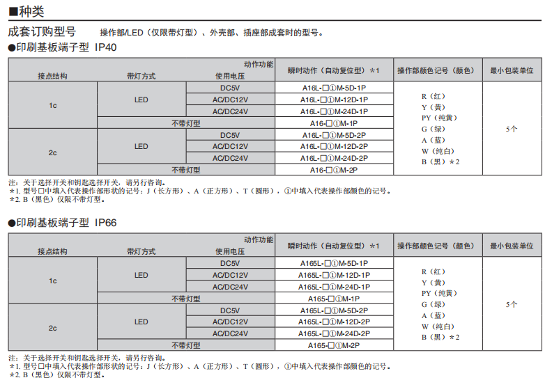 A16□-P 按鈕歐姆龍開(kāi)關(guān)(分離式)(帶燈·不帶燈)(φ16)