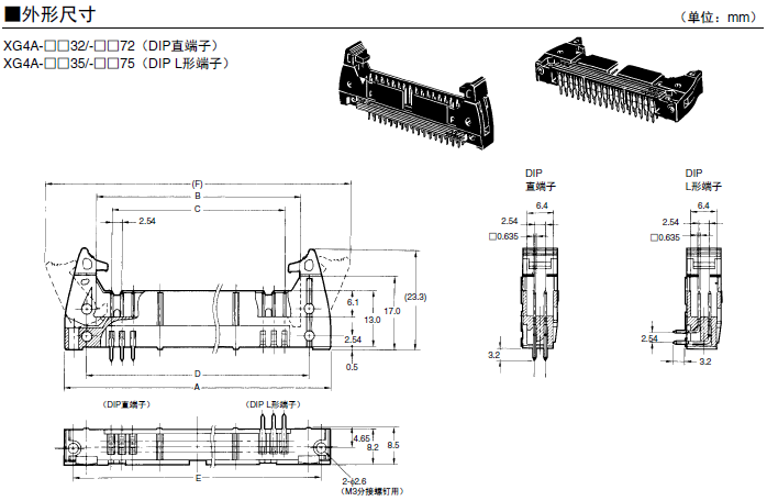 印刷基板連接器的核心、MIL規格標準品 通過采用新型生產力設計,高可靠性與低價格的同步實現。 備有便于省空間封裝的盒型插頭(XG4C)。 同時具有可進行中繼使用的壓接型插頭(XG4E)。 將本公司的散線壓接型連接器(XG5)特有插頭(XG8)與PCB型(XG2)組合使用可實現種類豐富的各種封裝。 適用本公司自己開發的簡易鎖定擺桿可以使特有插頭(XG8)和盒型插頭(XG4C)也能夠進行鎖定。 MIL規格(MIL-C-83503)標準。 標準品符合UL規格(File No. E103202)認證產品。