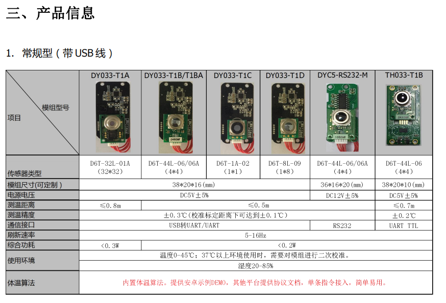 歐姆龍測溫模組是基于歐姆龍紅外高精度溫度傳感器以及先進軟件算法的非接觸式 測溫模組,款式多樣,有單點測溫型,陣列測溫型,以及熱成像測溫型等等,通過算法 實現測溫精度±0.3℃,實時輸出溫度數據,可通過 PC 端或移動端 APP 進行測溫,也可 根據 SDK 或相關協議文檔自行開發軟件