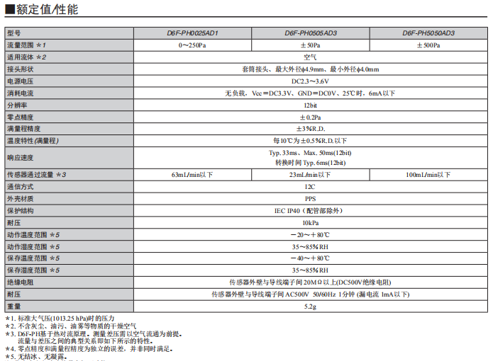 差壓傳感器D6F-PH0025AD1