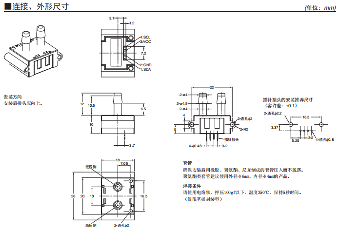 測量范圍:0~250Pa 小型、高精度、耐環(huán)境性能卓越的差壓傳感器 ±3%RD的高精度。 具備直線補(bǔ)償、溫度補(bǔ)償功能。 數(shù)字輸出(I2C通信)。 高流量阻抗減少旁路配置的影響。